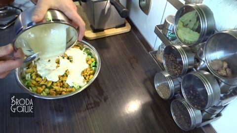 9. Należy wszystko razem wymieszać, ab dobrze składniki połączyły się z sosem