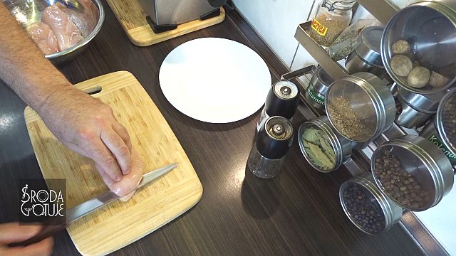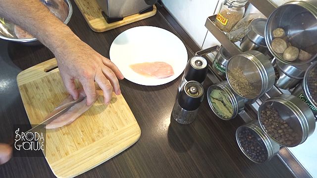 1. Zaczynamy od przekrojenia filetów w poprzek, poziomo.