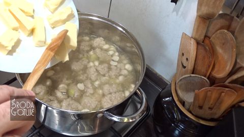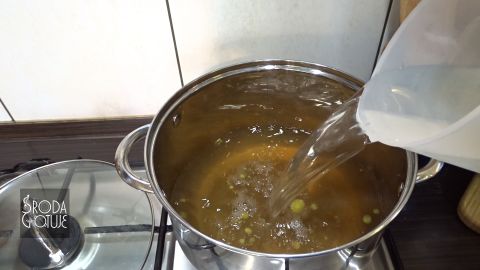 1. Na początek włączamy bulion, aby się zagotował. Bulion dopełniamy wodą w taki sposób, abyśmy mieli 2,5 litra wywaru