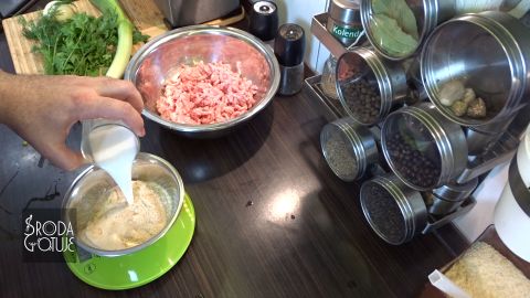 2. Teraz trzeba namoczyć bułkę tartą w mleku i wodzie.