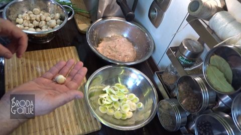 8. Malutkie pieczarki wrzucamy w całości, a większe kroimy na połówki