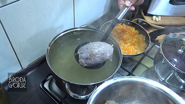 14. Wywar gotuje się już przeszło 2,5 h, wyjmujemy mięso i pozostawiamy do przestygnięcia.