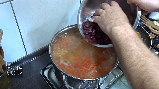 17. 10 minut minęło? Możemy wkładać kapustę do zupy. Zagotowujemy całość pod przykryciem.