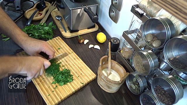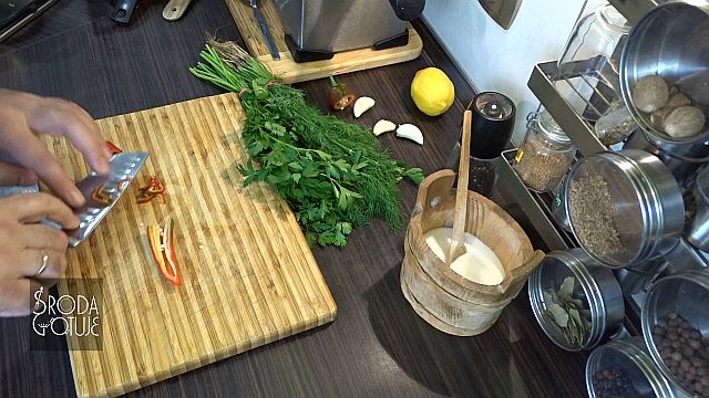 24. Siekamy garść koperku i natki pietruszki, aby były już przygotowane.