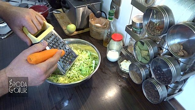 Ta pochodząca ze starożytnego Rzymu surówka, to prostota wykonania i bogactwo smaku: - jedna mała, twarda główka młodej kapusty - 1 duża lub 2 mniejsze marchewki - 1 średnia cebula - płaska łyżeczka soli SOS: - 1/3 szklanki mleka - 3 czubate łyżki majonezu - 1 łyżeczka tartego chrzanu - 2 łyżki octu winnego, jabłkowego lub cydrowego - 1 płaska łyżeczka cukru
