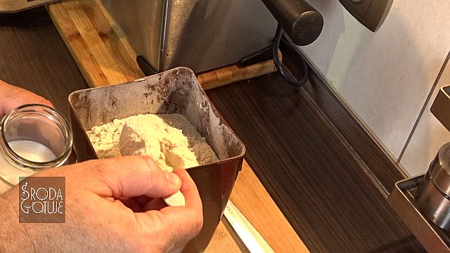 5. Robimy zaklepkę (lub zaprawkę jak kto woli) wsypując do słoiczka z wodą mąkę. trzeba to dobrze wymieszać.