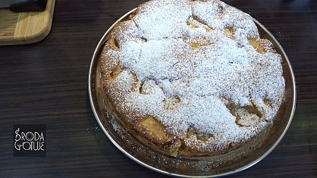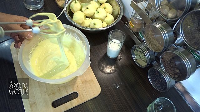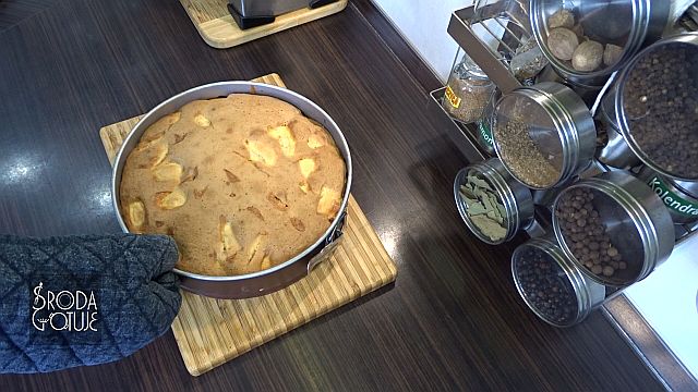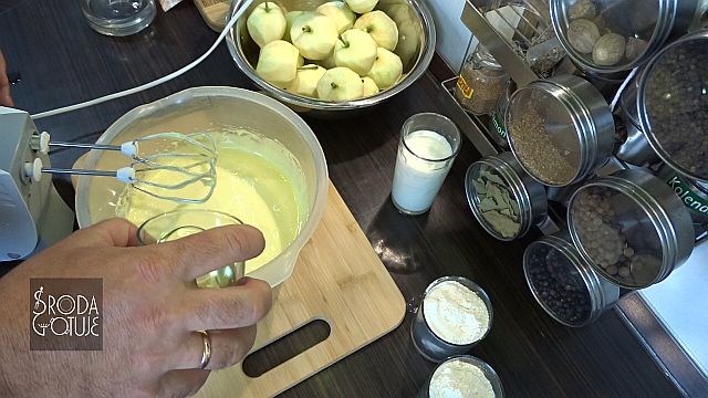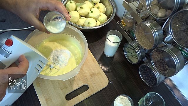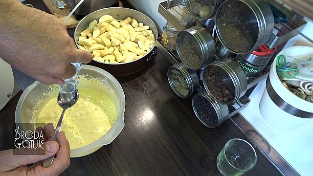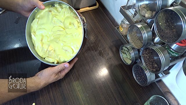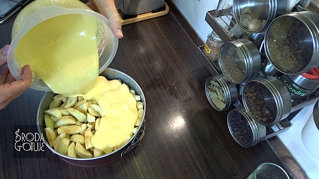 12. Można już zalać jabłka ciastem.