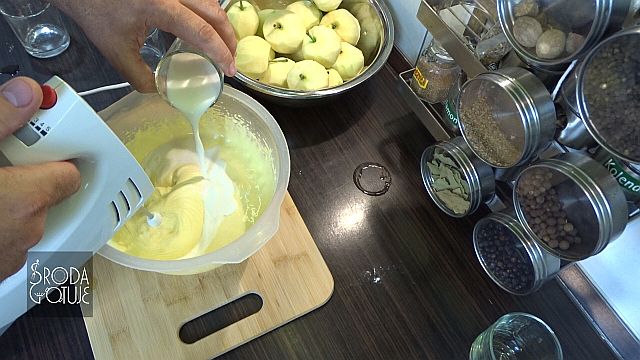 6. Czas na mleko, dolewamy je małymi porcjami, po kilka łyżek i za każdym razem miksujemy chwilę.