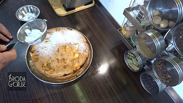 16. Aby wykończyć smakowo i estetycznie, posypujemy ciasto cukrem pudrem przesiewanym przez sito.