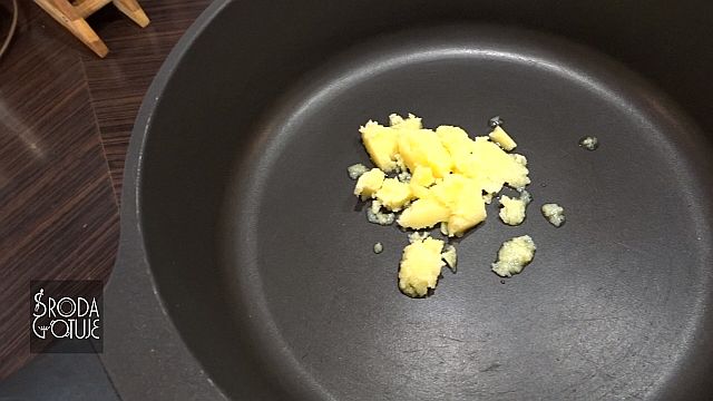 6. W dużym rondlu lub patelni o grubym dnie roztapiamy 2 łyżki masła klarowanego.