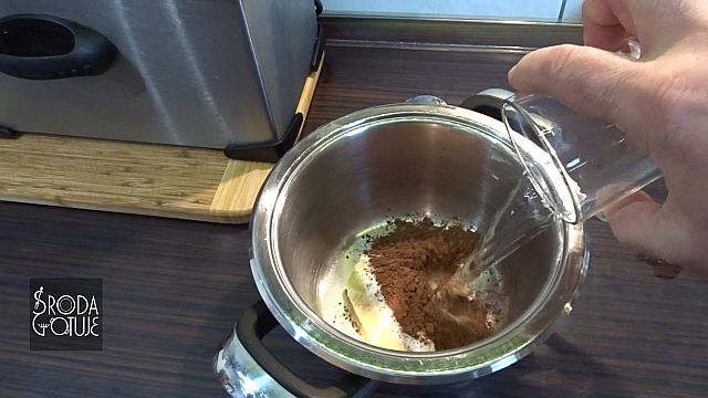 - 50 g masła śmietankowego lub extra - 3 łyżki cukru - 2 łyżki ciemnego kakao - 4 łyżki wody