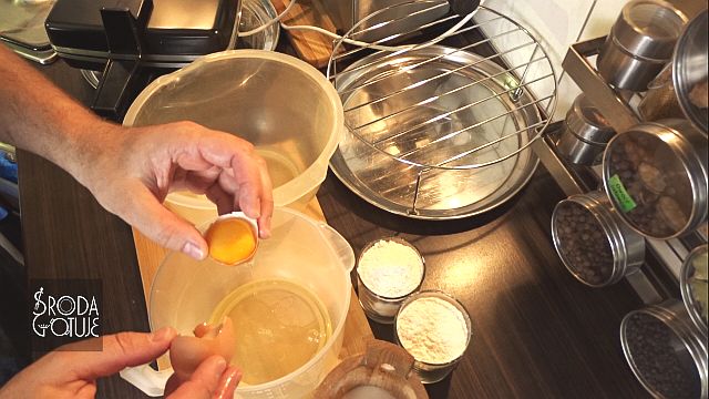 3. Aby piana była sztywna dodajemy szczyptę soli do białek, przy okazji wzbogacimy smak gofrów.