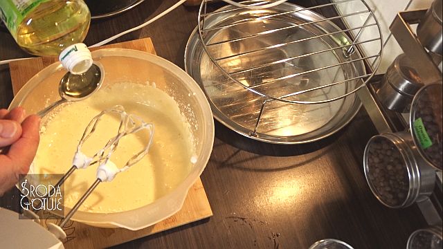 7. Miksujemy chwilę na gładko i wlewamy 4 łyżki oleju, miksujemy dalej
