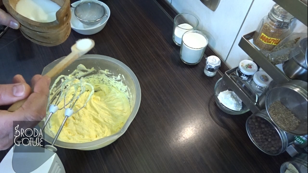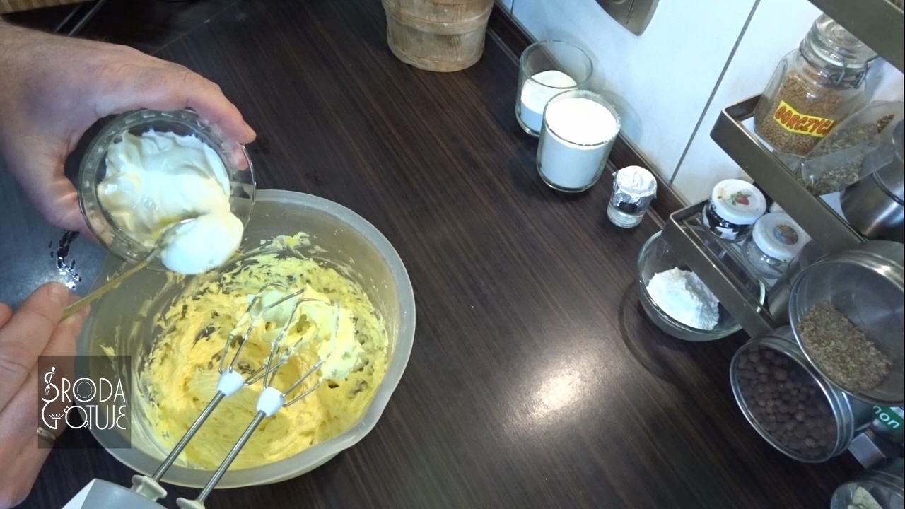 4. podobnie postępujemy ze śmietaną, dodajemy po łyżce za każdym razem miksując.
