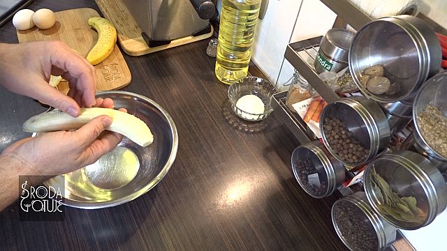 1. Potrawa jest niezwykle prosta, a jednocześnie bardzo smaczna. Obieramy i dokładnie czyścimy obrane banany.