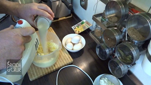 6. Teraz do tego samego naczynia można dodawać ser porcjami i miksować za każdym razem, aby tworzyła się jednolita masa (do 1 minuty każda porcja). Ja zmieniłem naczynie z obawy, że poprzednie będzie za małe :)