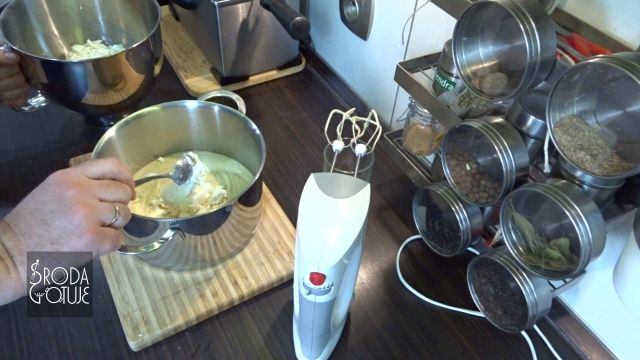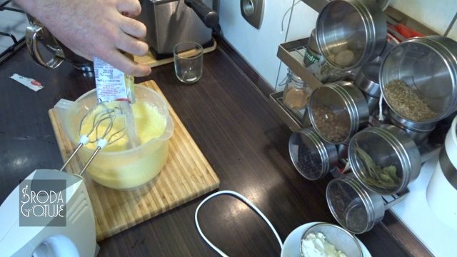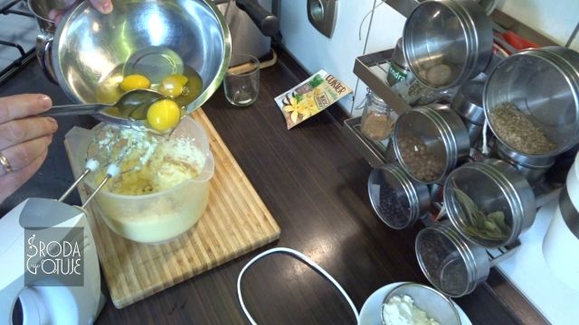 3. Jaja warto wybić do miski, aby nie było niespodzianek ze skorupkami i dodając po jednym miksujemy na równą masę