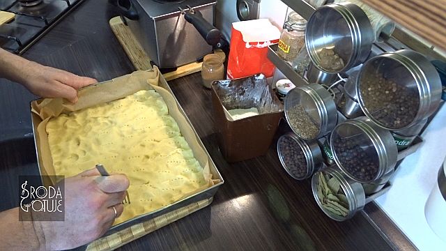 11. Ostatnia czynność przed pieczeniem: trzeba podziurkować całe ciasto widelcem, aby ewentualne powietrze zbierające się pod ciastem w czasie pieczenia, miało gdzie ulecieć.