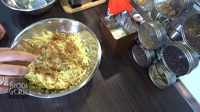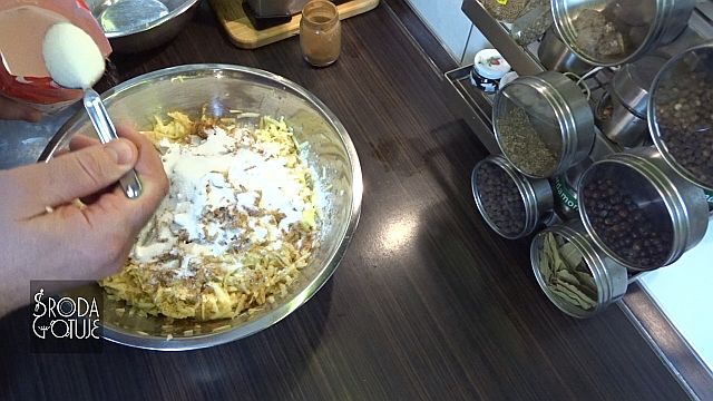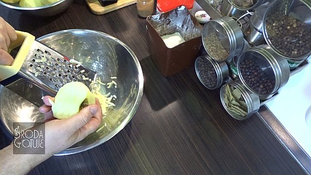 14. W tym czasie, obrane wcześniej jabłka, ścieramy na grubej jarzynowej tarce.