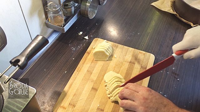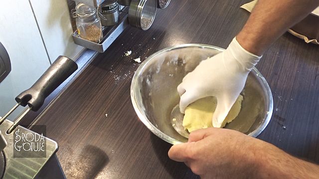 6. Jeśli tylko ciasto się połączy i można uformować spójny wałek, to jesteśmy pewni, że jest dobre do dalszego działania.