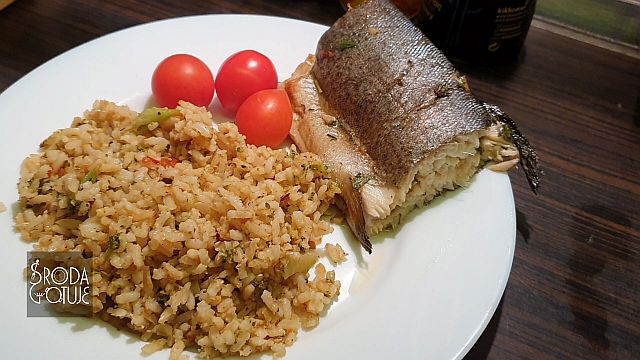 Wspaniała aromatyczna ryba, bardzo smaczna na ciepło i jeszcze lepsza na zimno: - 2 pstrągi około 400g każdy (koniecznie wyjąć ości) - połówka cytryny MARYNATA - łyżka siekanej naci pietruszki - łyżka siekanego koperku - pół łyżeczki pieprzy ziołowego - 3 łyżki oliwy z oliwek (najlepiej smakowej, przygotowanej samemu) - łyżka jasnego sosu sojowego (o zmniejszonej zawartości soli) UWAGA: - marynujemy pstrągi dzień przed pieczeniem. PIECZENIE: - 200 st. termoobieg, lub 210 st. bez termoobiegu. po 10 minutach wysunąć z piekarnika, odkryć nieco folię aluminiową, aby miały szanse się lekko zarumienić.