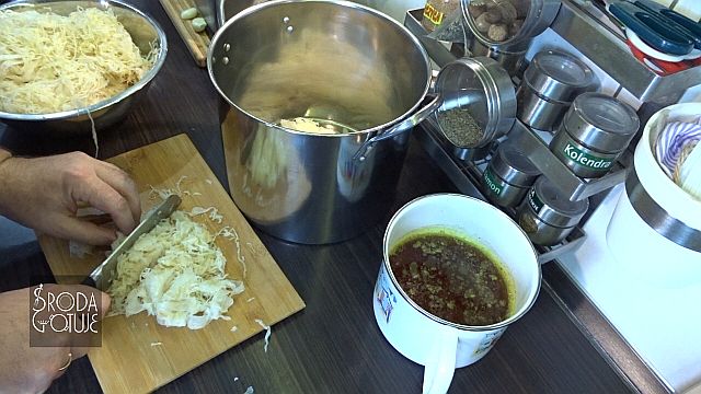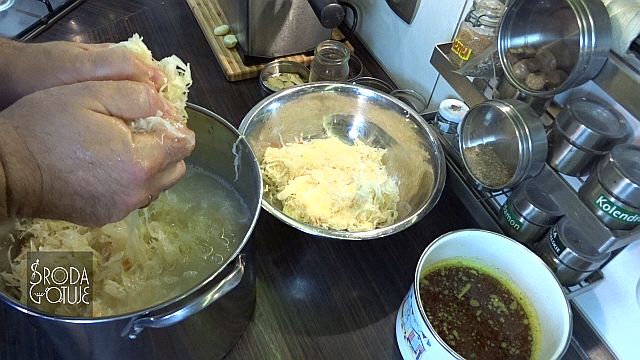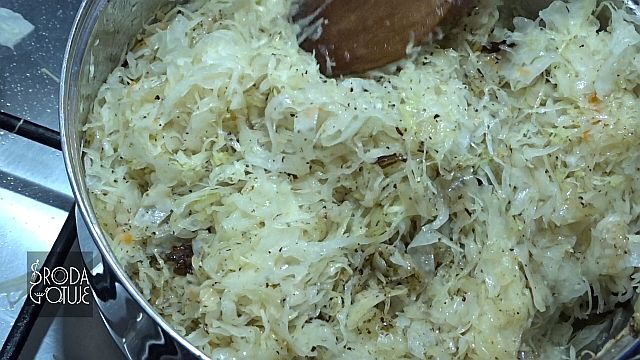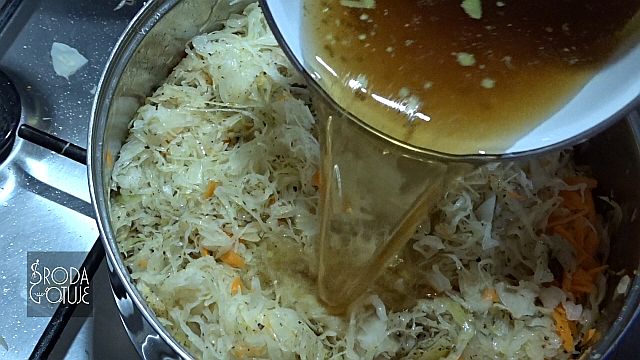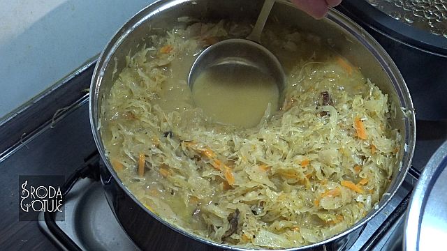 16. Gdy kapusta jest już ugotowane al dente, nabieramy dwie łyżki wazowe sosu z kapusty.