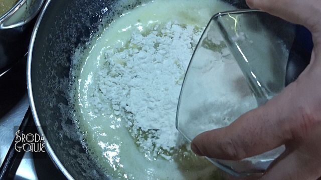 14. Kiedy masło się spieni wsypujemy mąkę.