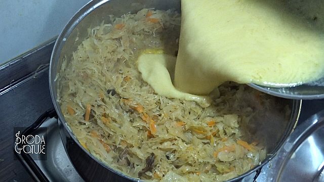 18. Dodajemy zasmażkę do gotującej się kapusty i natychmiast dokładnie mieszamy całość.