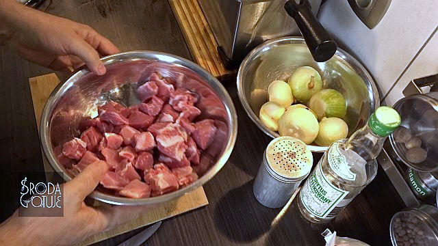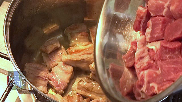 1. Świeżonka to wspaniała sezonowa potrawa. Kiedyś rolnicy zlecali zabijanie, wyhodowanych przez siebie świń, wiejskiemu rzeźnikowi. Z mięsa wykrajano wtedy takie części świeżego mięsa, jakie kto lubił i przyrządzano z niego prosty szybki gulasz. Jeśli brzuszek, który mamy jest chudy, roztapiamy w garnku jedną łyżkę smalcu.