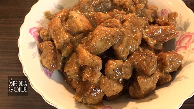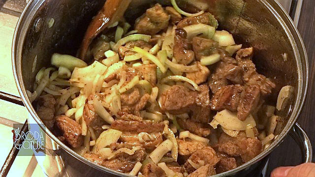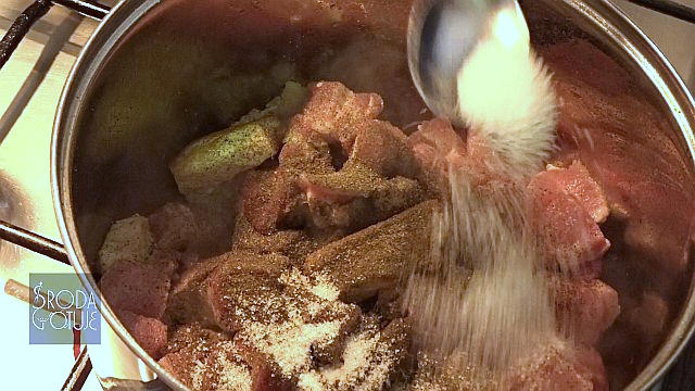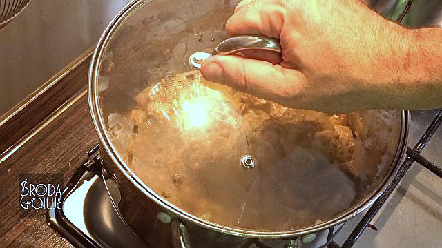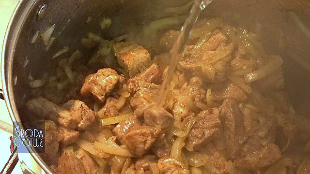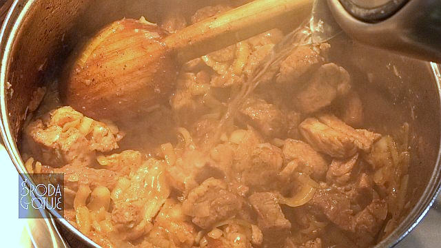 8. I dusimy mięso pod przykryciem na mniejszym ogniu.
