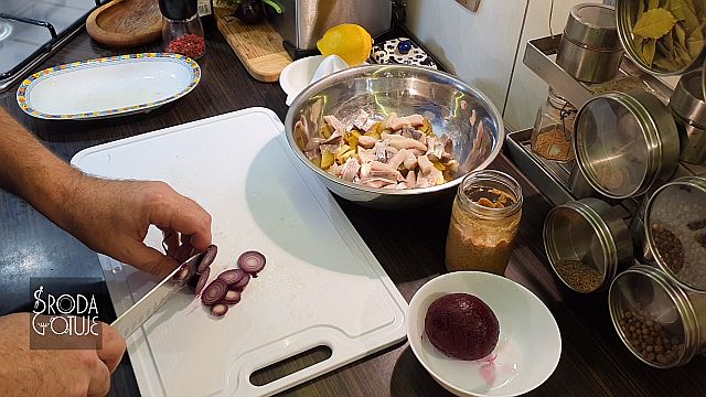 5. Cebulę kroimy na kółka.