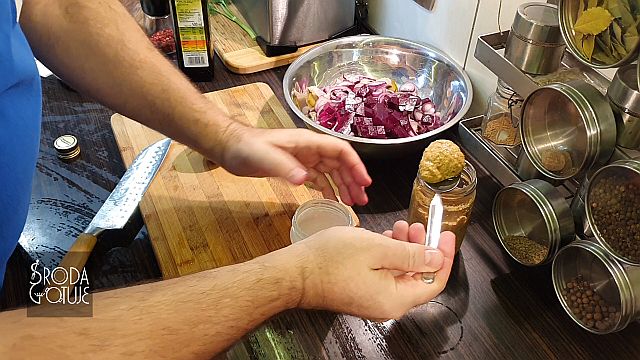 10. Dodajemy do słoika także łyżkę ostrej musztardy i ponownie dobrze mieszamy.