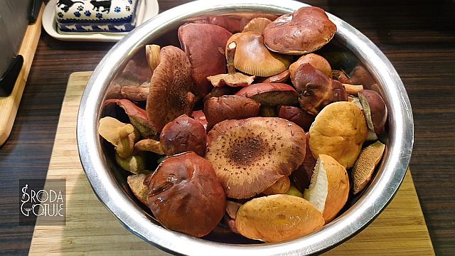 1. Mamy piękne grzyby mieszane: podgrzybki, opieńki, zajączki, maślaki, sitarze i inne jadalne :) Muszą być starannie wyczyszczone, jednak jeszcze ich nie myjemy w wodzie.
