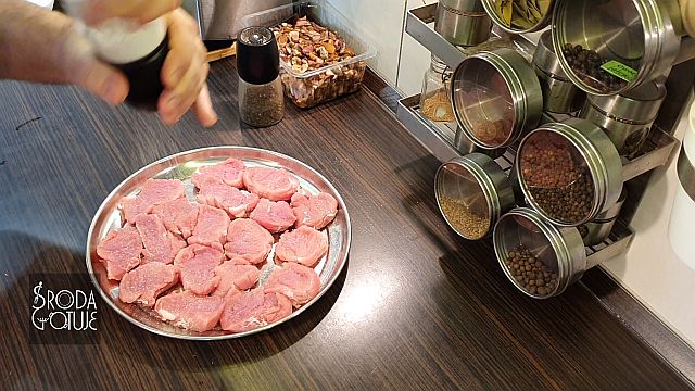 6. Teraz trzeba przyprawić solą i świeżo mielonym pieprzem. Delikatnie wklepujemy ręką sól i pieprz, następnie odwracamy nasze kawałki i przyprawiamy z drugiej strony.
