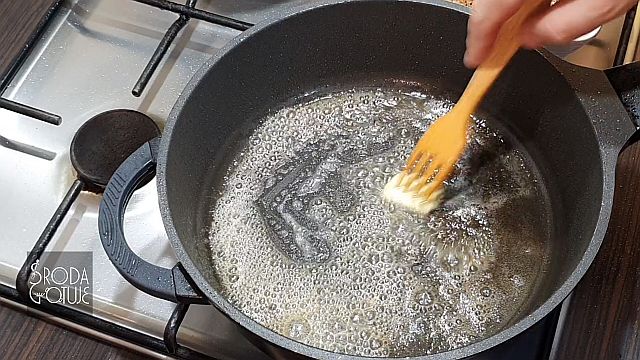 11. Mniej więcej w połowie smażenia, trzeba przyprawić solą i pieprzem.