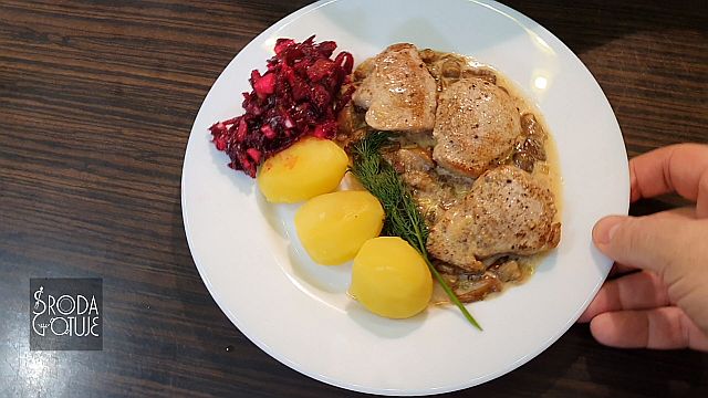 Grzyby, zbierane od dawien dawna w Polsce, to doskonały jesienny przysmak: - miska mieszanych grzybów leśnych (mogą z wcześniej rozmrożonych) - 600 - 800 g polędwiczek wieprzowych - 1 duża cebula - 2 ząbki czosnku - 1 mała śmietanka 30% (200ml) - łyżka smalcu - 2 łyżki masła - sól i pieprz do smaku